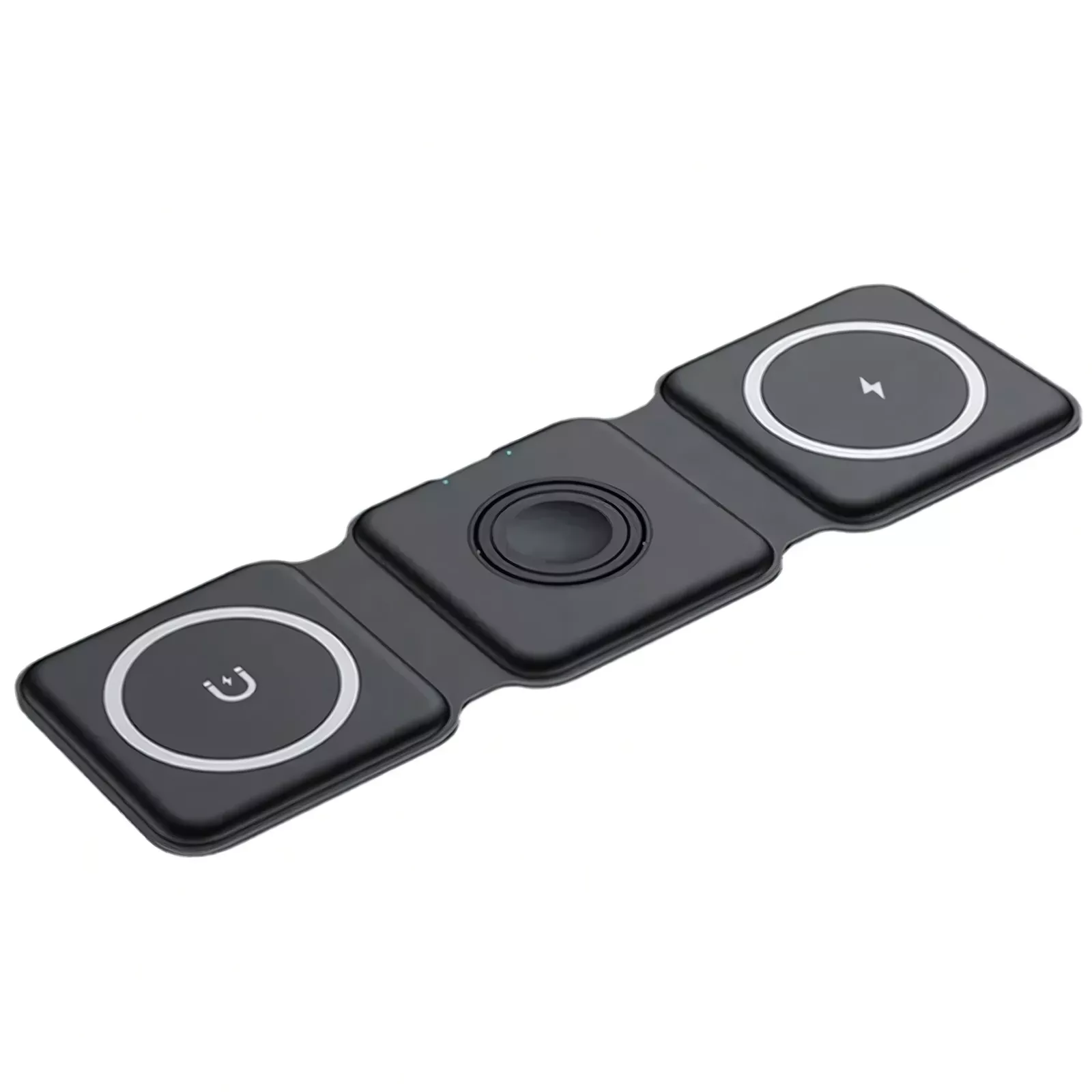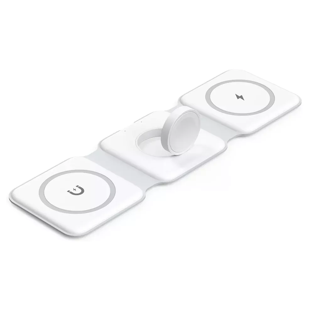 Eliminate the clutter of multiple chargers with the 100W 3-in-1 Fast Wireless Charger Pad Stand. This powerful charging dock is designed to simultaneously charge your iPhone, Apple Watch, and AirPods, making it an ideal accessory for Apple users. Supporting the latest iPhone models, Apple Watches, and AirPods, this sleek and foldable station ensures you stay powered up effortlessly. The compact, foldable design means it doubles as a portable stand, perfect for any setting – whether at home, in the office, or on the go.