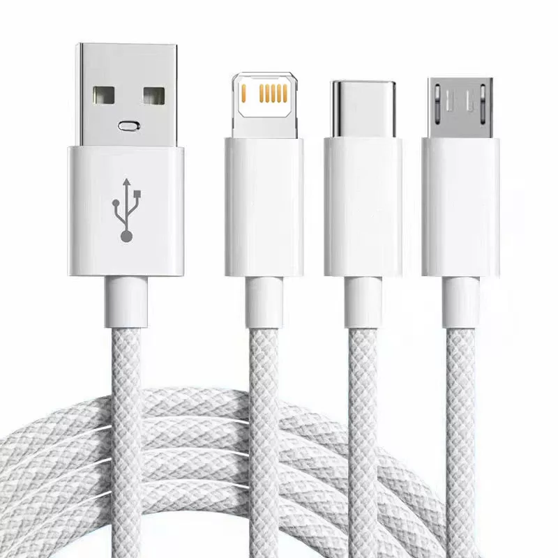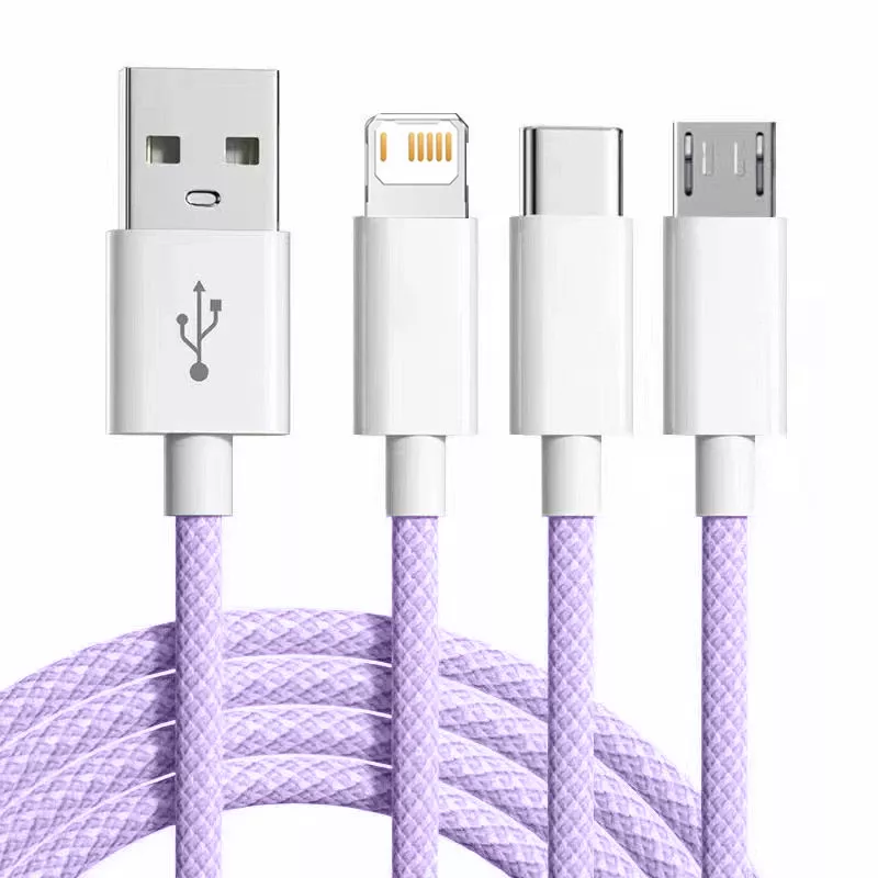 With its triple-connector design, this cable is engineered to meet all your charging needs. Equipped with USB A to Lightning, Type-C, and Micro USB connectors, it works perfectly with Samsung smartphones, iPhones, Xiaomi devices, and many more. No need to carry multiple chargers—this single cable does it all!