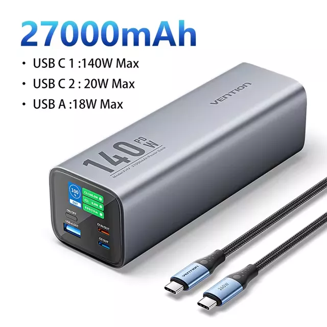 140W Fast Charging Power Bank 27000mAh Portable Battery for Samsung Devices