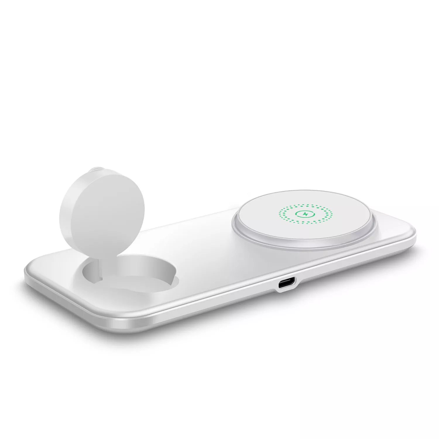• Dual Charging Pads: Dedicated areas for your smartphone and smartwatch, plus space for earbuds.