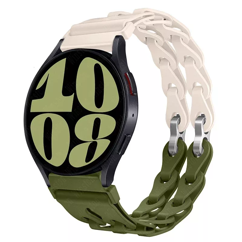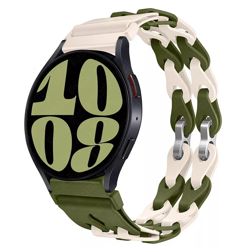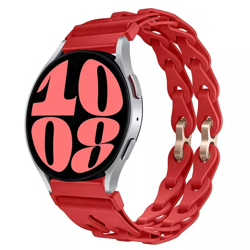 Elevate your Samsung Galaxy Watch experience with our 20mm silicone chain strap. It’s not just a band—it’s a statement. Whether you’re staying active or making an impression, this strap has you covered. Upgrade your watch today and experience the perfect combination of style, comfort, and durability.