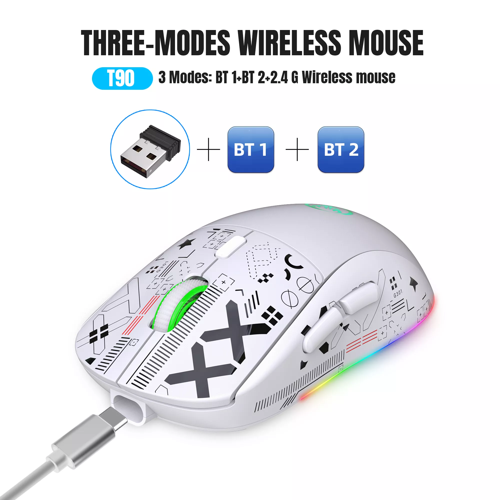 3-Mode Bluetooth Wireless Gaming Mouse for Samsung Devices with RGB Backlight
