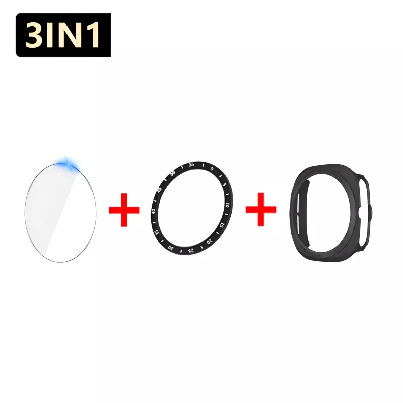 Give your Samsung Galaxy Watch 7 Ultra the ultimate protection with this 3-in-1 case set. Designed specifically for the 47mm model, this all-in-one solution includes a tempered glass screen protector, hard PC case, and a bezel ring cover to safeguard your watch from scratches, drops, and everyday wear. This comprehensive set ensures your watch stays safe while maintaining its sleek, modern look. Perfect for those who want full protection without compromising style.