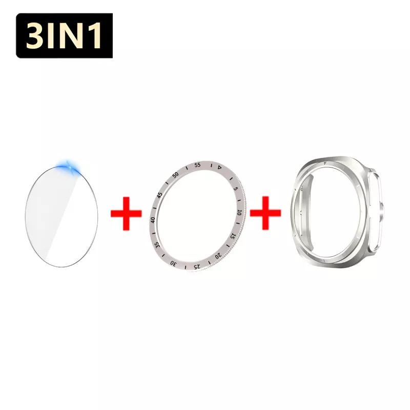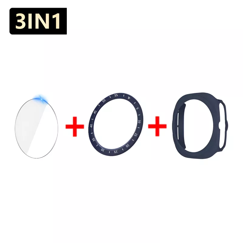 This 3-in-1 protective set is crafted from premium materials to ensure durability and longevity. The tempered glass screen protector offers excellent clarity and shields your watch from accidental scratches and cracks. The hard PC case provides a strong, impact-resistant layer that absorbs shocks, while the bezel ring cover adds a sleek and polished look, further protecting the edges of your watch from wear and tear. Together, they provide all-around defense for your device.