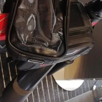 Great bag! Sturdy & doesn't rattle when off road. This was one of the only bags that I could find to fit my folding E-bike. Works great & is sensitive enough to use a touchscreen through it.